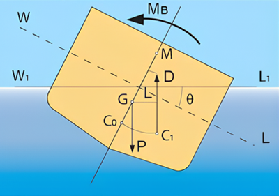 Какой из изображенных на схеме отрезков является метацентрической высотой судна?