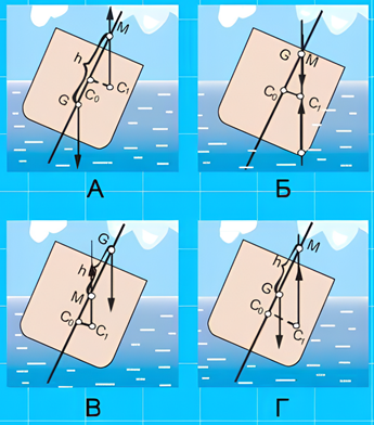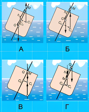 В каком из этих случаев судно имеет отрицательную остойчивость?