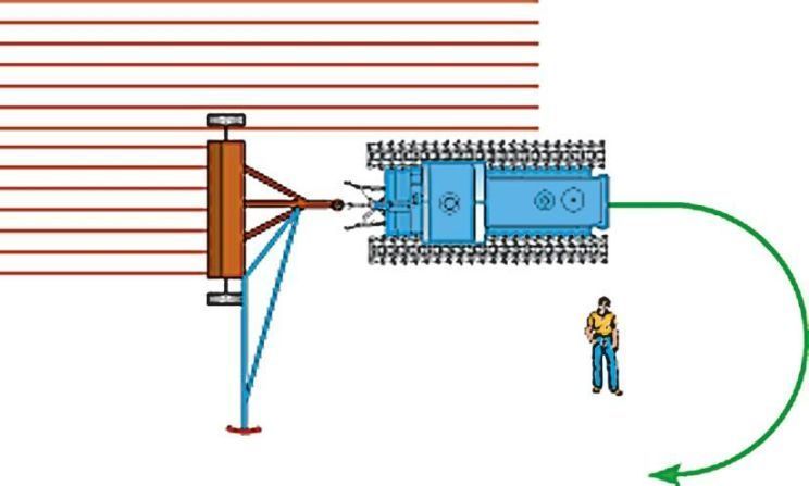 Допускаются повороты агрегата с заглубленными орудиями, присоединенными по двухточечной схеме, под углом не более 20°.