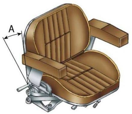 В каких пределах возможно регулирование спинки сиденья на комбайне “Дон-1500” по углу наклона (A)?