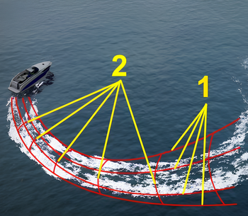 Как называются судовые волны, обозначенные на рисунке под номерами "1" и "2"?