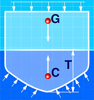 Как соответственно называются точки приложения равнодействующих сил тяжести (G) и выталкивающих сил (С)?