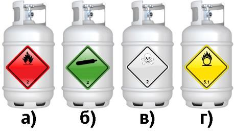 Какой знак опасности наносится на газовый баллон, в соответствии с ДОПОГ, если в нем перевозится воспламеняющийся газ?