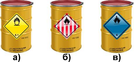 Какой знак опасности наносится на барабан с опасным грузом, в соответствии с ДОПОГ, если его содержимое может вызывать или поддерживать (интенсифицировать) горение других материалов?