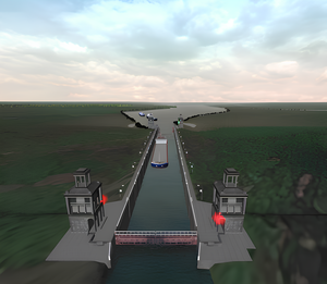 Нанесение надписей и иных меток на поверхности камер и голов шлюза, на причальные палы, причальные стенки и другие конструкции шлюза.