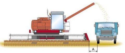 При загрузке на ходу технологического продукта расстояние по фронту между комбайном и транспортным средством должно быть: