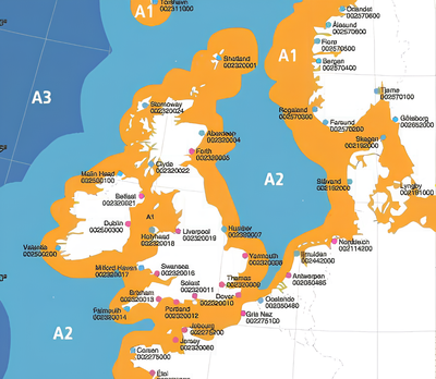 Какой частотный диапазон используется для радиосвязи судов с береговыми радиостанциями в морском районе А2 ГМССБ?
