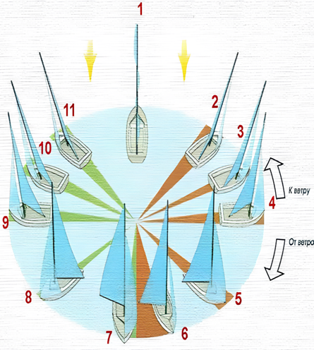 Курс парусника относительно ветра, обозначенный на рисунке цифрой «11», называется?