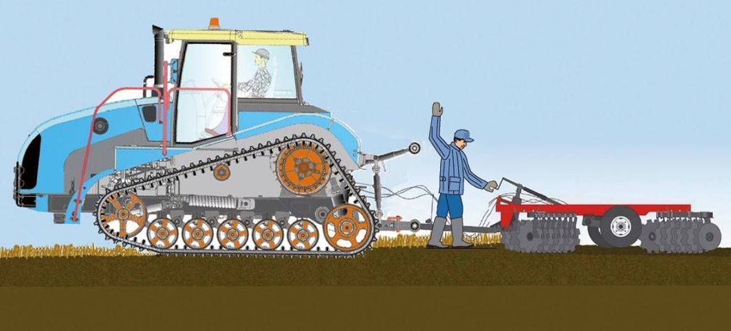 Движение трактора задним ходом в рабочем положении дисковой бороны: