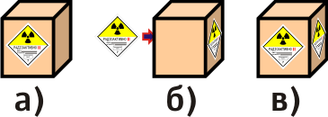 Транспортное средство, перевозящее радиоактивный материал в упаковках, не маркируется знаками опасности.