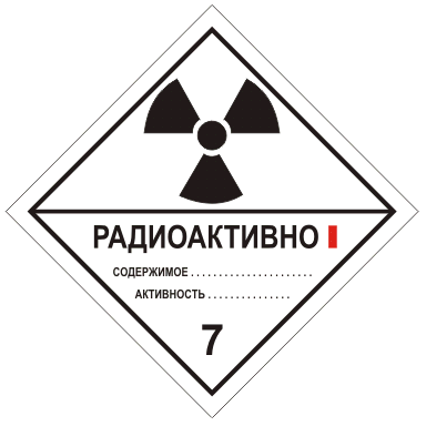 Водитель должен перевезти упаковки с опасным грузом, маркированные знаками опасности № 7В. Какой из указанных предметов должен быть на транспортном средстве, если к нему, в соответствии с требованиями ДОПОГ, должны крепиться таблички оранжевого цвета?