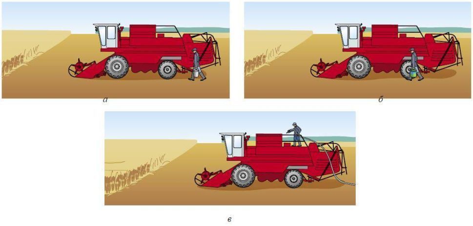 Какими средствами необходимо заправлять комбайн в полевых условиях?