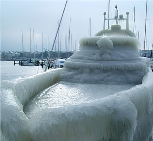 Как называется интенсивное (при забрызгивании) нарастание слоя льда на палубе, фальшборте, надстройках, рангоуте и палубных судовых устройствах?