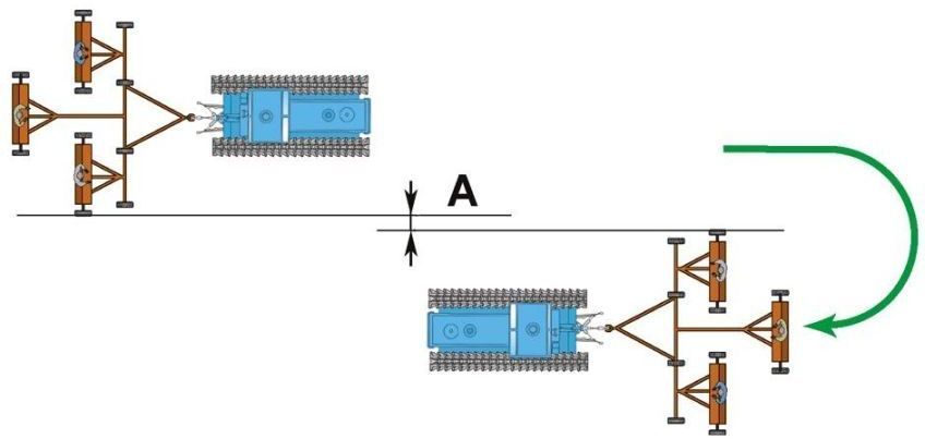 Расстояние между следами крайних сошников (А) при движении посевных агрегатов челночным способом должно равняться: