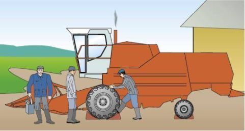 Можно ли производить техническое обслуживание зерноуборочной машины при работающем двигателе?