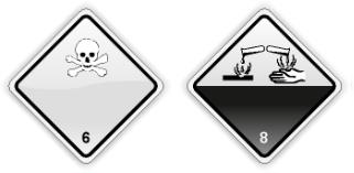Какими видами опасности обладает содержимое транспортного пакета, если он обозначен показанными на рисунке знаками опасности?