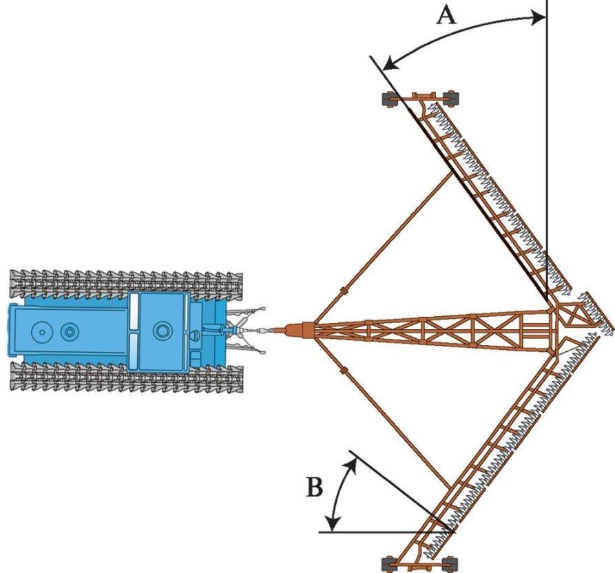 Изменением угла атаки рамы (А).