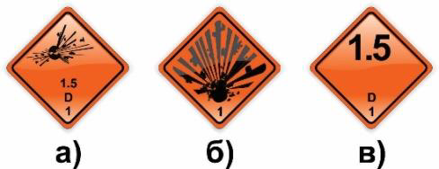 В транспортном документе на опасный груз сделана следующая запись: «UN 0331 ВЗРЫВЧАТОЕ ВЕЩЕСТВО БРИЗАНТНОЕ, ТИП В, 1.5D, (B1000C)». Какой из приведенных знаков опасности должен быть размещен на транспортном средстве с этим опасным грузом?