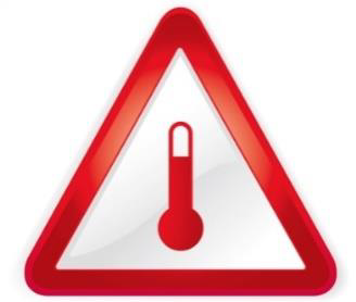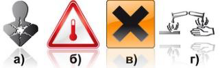 Содержимое контейнера находится при повышенной температуре (жидкости при температуре не ниже +100 °С или твердые вещества при температуре не ниже +240 °С), попадание его на кожу может вызвать ожог.