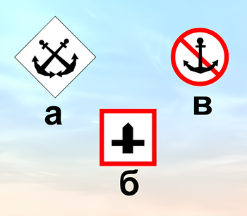 Какой из изображенных на иллюстрации береговых навигационных информационных знаков запрещает движение мелких плавучих средств?