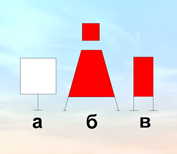 Какой из изображенных на иллюстрации береговых навигационных знаков обозначает направление судового хода?