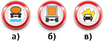 Какие из данных дорожных знаков запрещают движение перевозящего взрывчатые вещества транспортного средства, маркированного табличками оранжевого цвета?