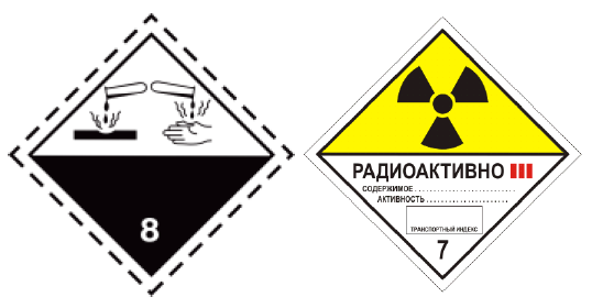 Где на транспортном средстве, при перевозке радиоактивных материалов в упаковках, должны прикрепляться большие знаки опасности?