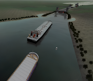 Судно, ограниченное в возможности маневрировать, на ходу.