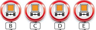Какие из данных дорожных знаков запрещают движение перевозящего взрывчатые вещества транспортного средства, маркированного табличками оранжевого цвета?