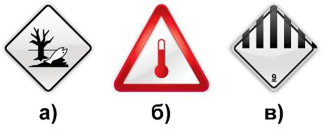 Где к транспортному средству должен крепиться знак, показанный на рисунке, если в нем перевозятся тигли с веществом при повышенной температуре?